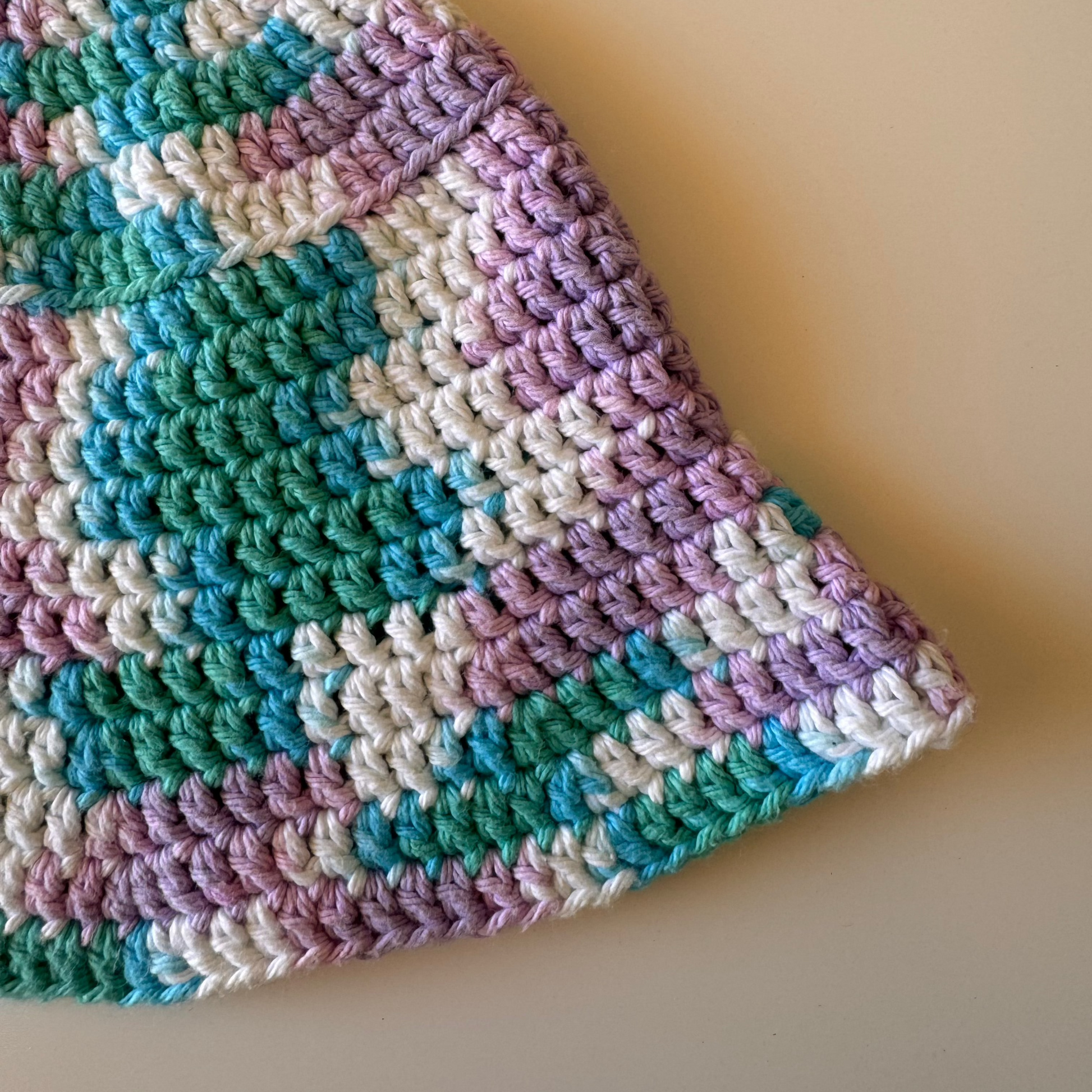 Multicolor bucket hat made with 100% high quality cotton yarn.