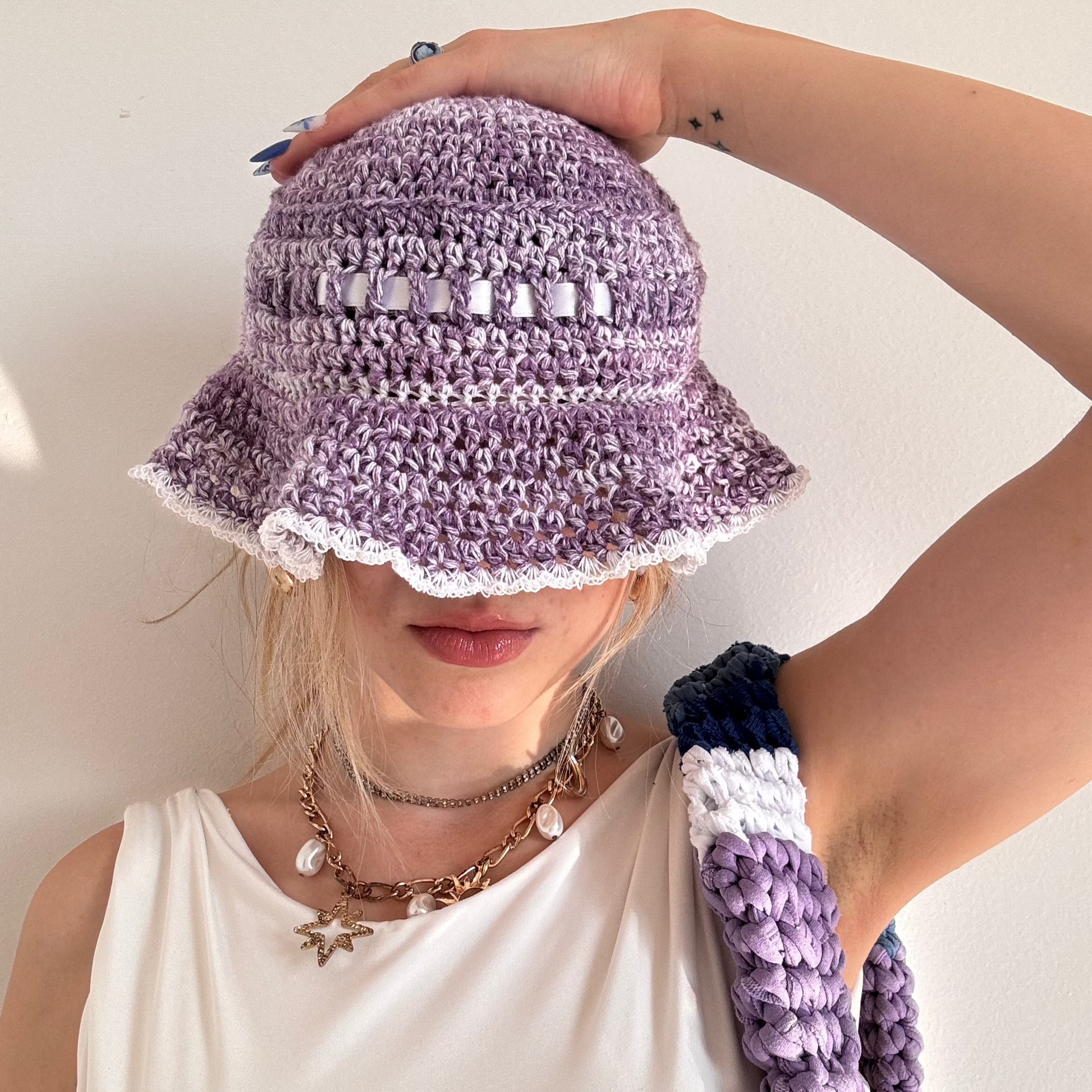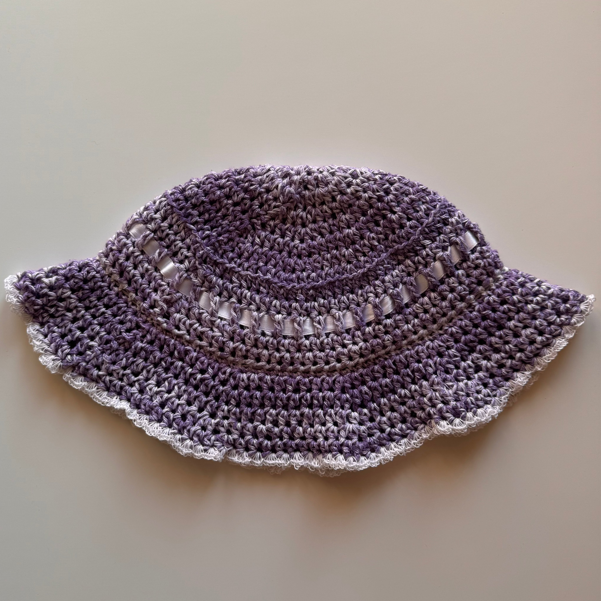 The ribbon bucket hat is made with 100% high quality cotton yarn and upcycled ribbons.