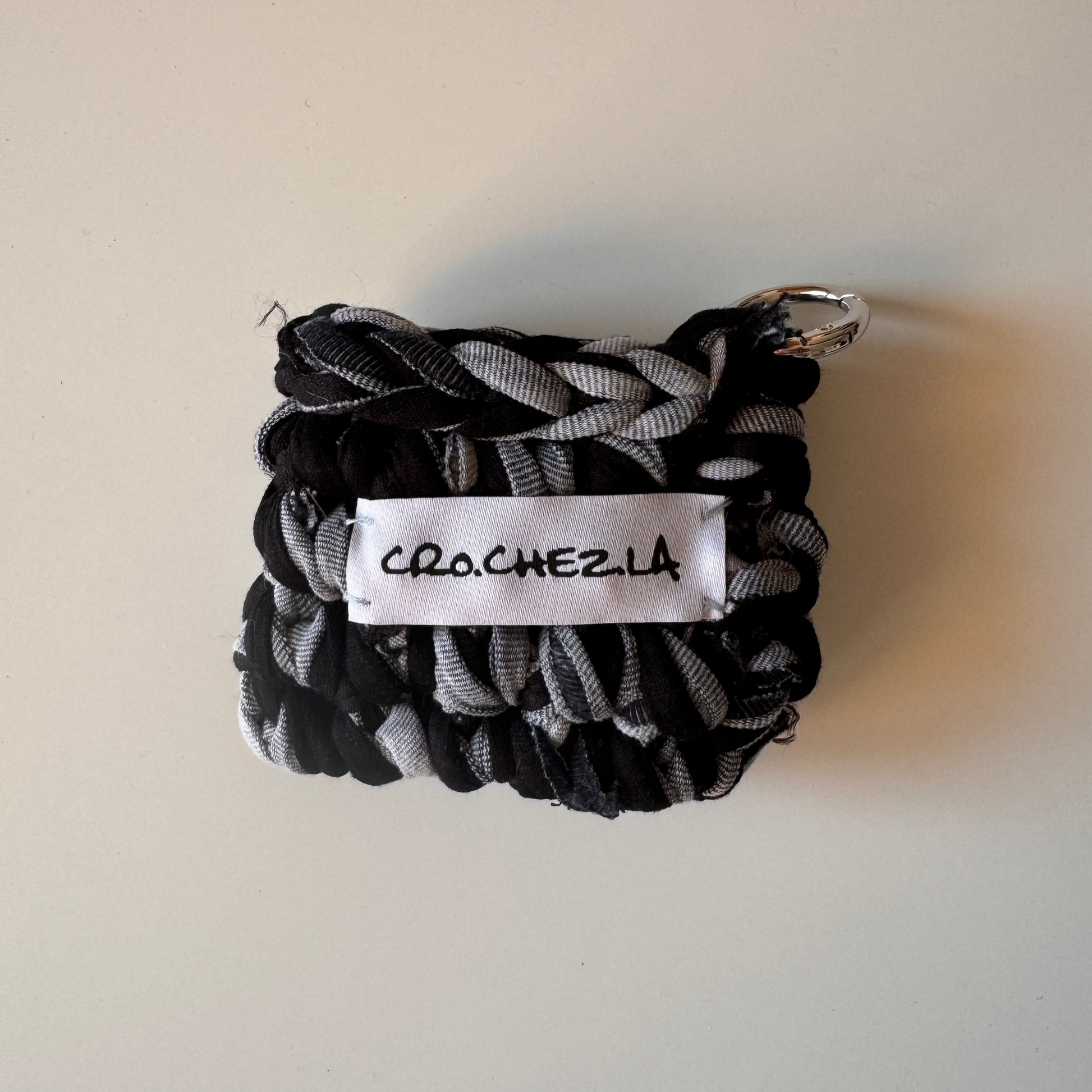 Crochet Airpods Case made from 100% recycled T-shirt yarn .