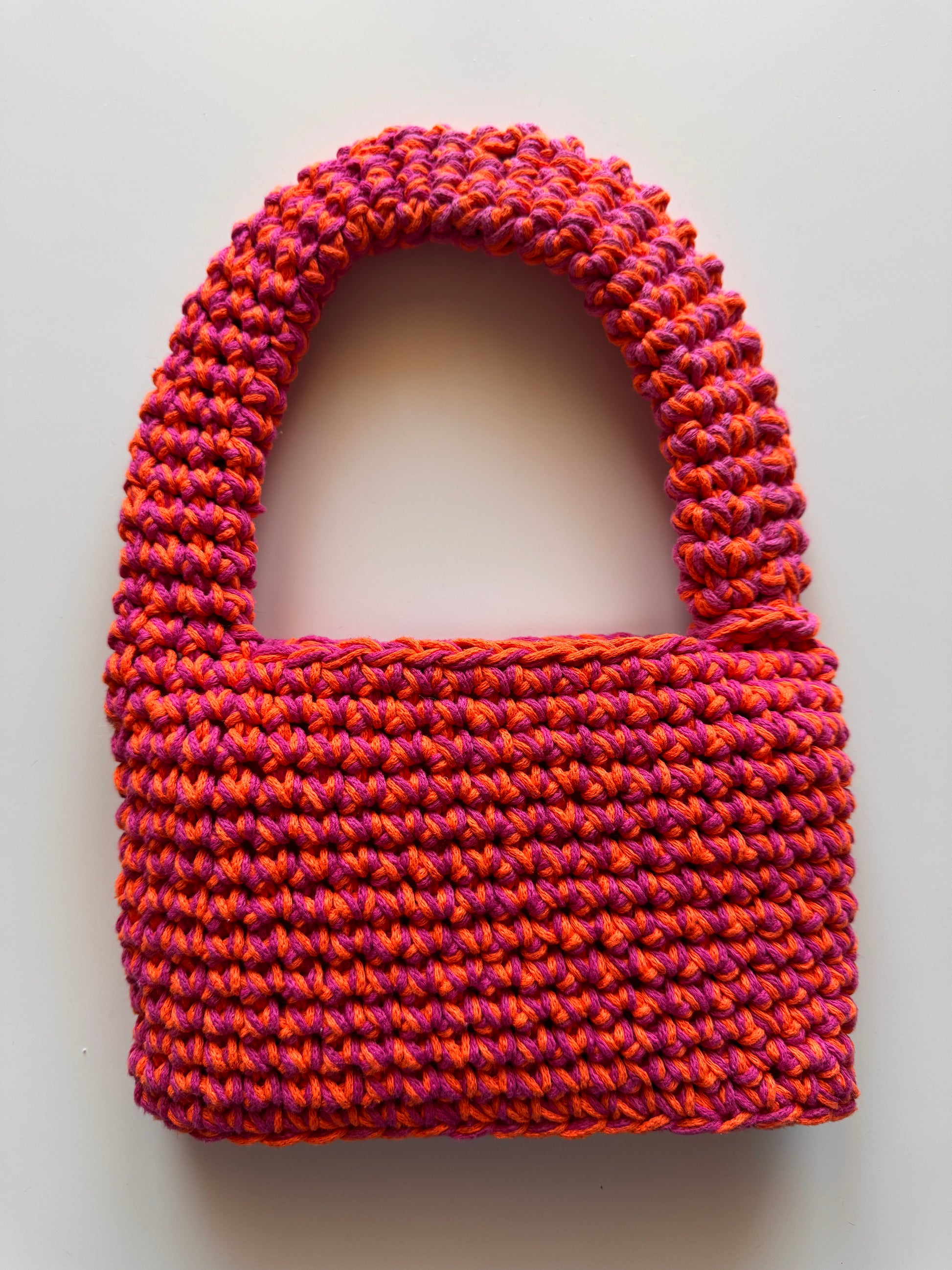 A mix of macramé orange and pink yarn guarantees a sturdy and stable structure.